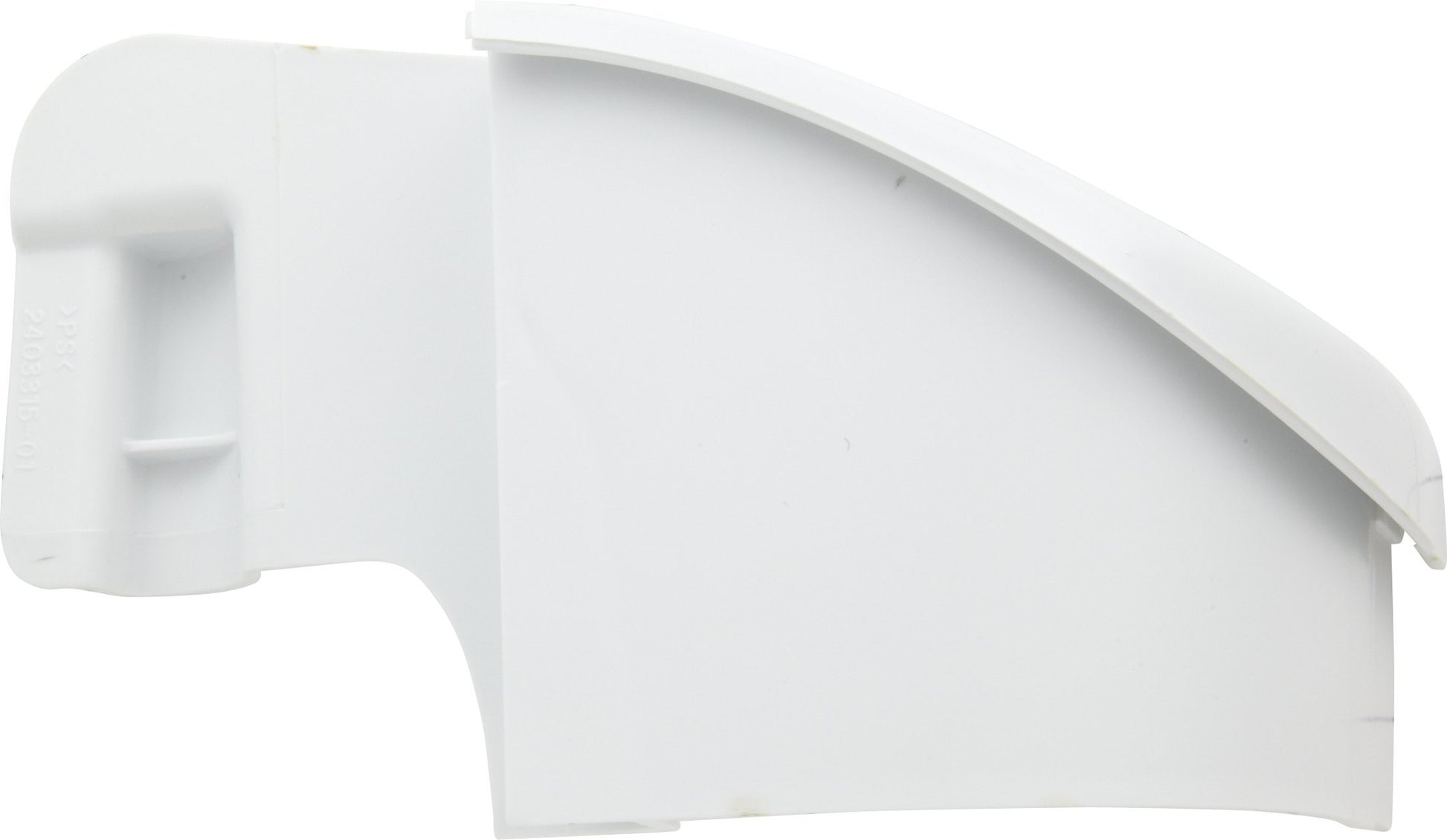 Refrigerator door bar end cap, left side. Supports the left hand gallon rack.
