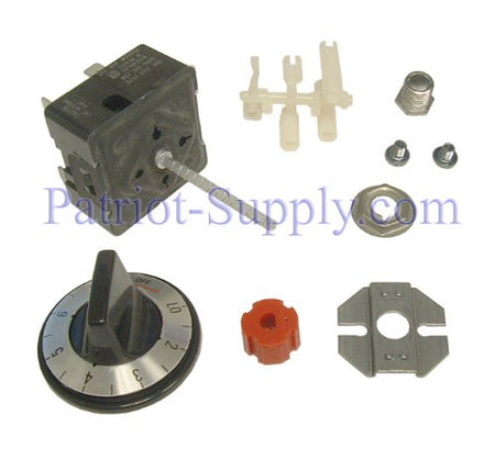 The Robertshaw 5500 Series infinite switch is a rotary switch which controls the power dissipated by a heating element. It is used on electric ranges, hot plates, warming drawers and zones, barbecue Grills, space heaters, quartz heaters and many applications which call for proportionate control of a resistive load. made in United States. Manufactured by Robertshaw controls company.