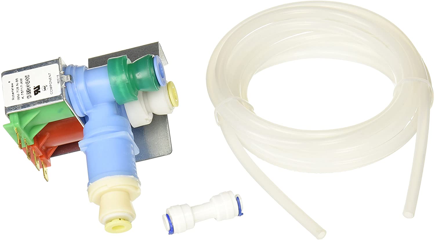 This double coil valve is specifically designed for replacement of certain Whirlpool and KitchenAid refrigerator models. Housing both a 3/8 inch and a 1/4 inch male terminals, this water valve also includes some extra water tubing for installation purposes.