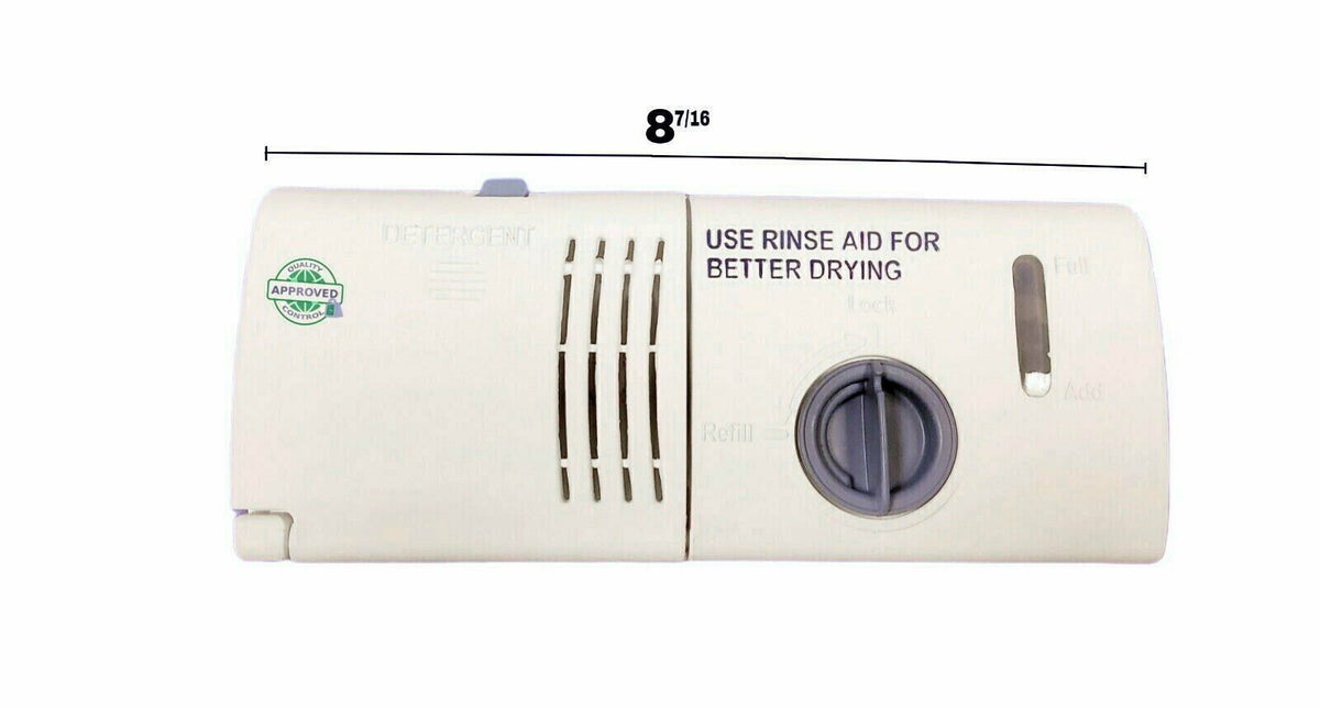 WPW10224430 Dishwasher Detergent & Rinse Aid Dispenser 8" length Approx. WPW10224430 perfect fit old serials, compatible with and replacement for Dakor, Wascomat Whirlpool, Kenmore, Kitchen aid, Samsung, LG, Frigidaire, Westinghouse, GE, General, Maytag, Electrolux, Amana Serial 1WPW102244309 and more.