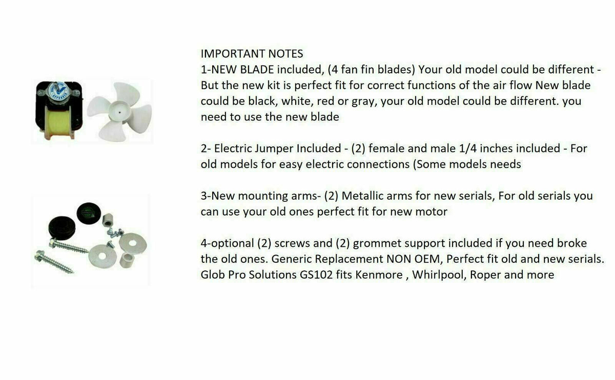 4389142 Refrigerator Evaporator Fan Motor WP4389142 perfect fit old serials, compatible with and replacement for Dakor, Wascomat Whirlpool, Kenmore, Kitchen aid, Samsung, LG, Frigidaire, Westinghouse, GE, General, Maytag, Electrolux, Amana Serial 143891429 and more.
