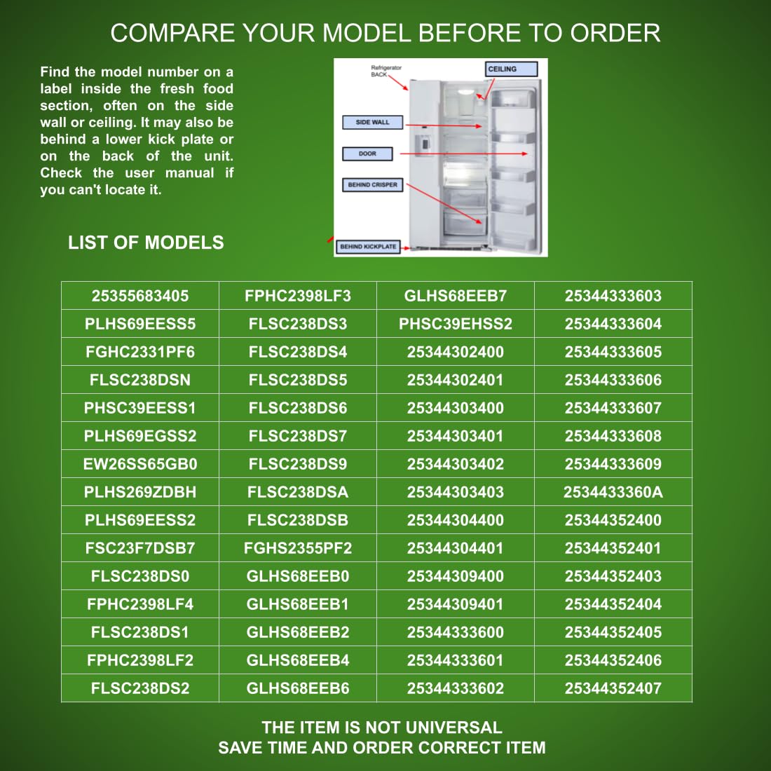 5303918344 Compatible with Electrolux, Frigidaire, Kenmore Ice Maker Kit Refrigerator fits Old # AP4299334 5303918344 perfect fit old serials, compatible with and replacement for Dakor, Wascomat Whirlpool, Kenmore, Kitchenaid, Samsung, LG, Frigidaire, Westinghouse, GE, General, Maytag, Electrolux, Amana Serial Manufacturer Part XXX.