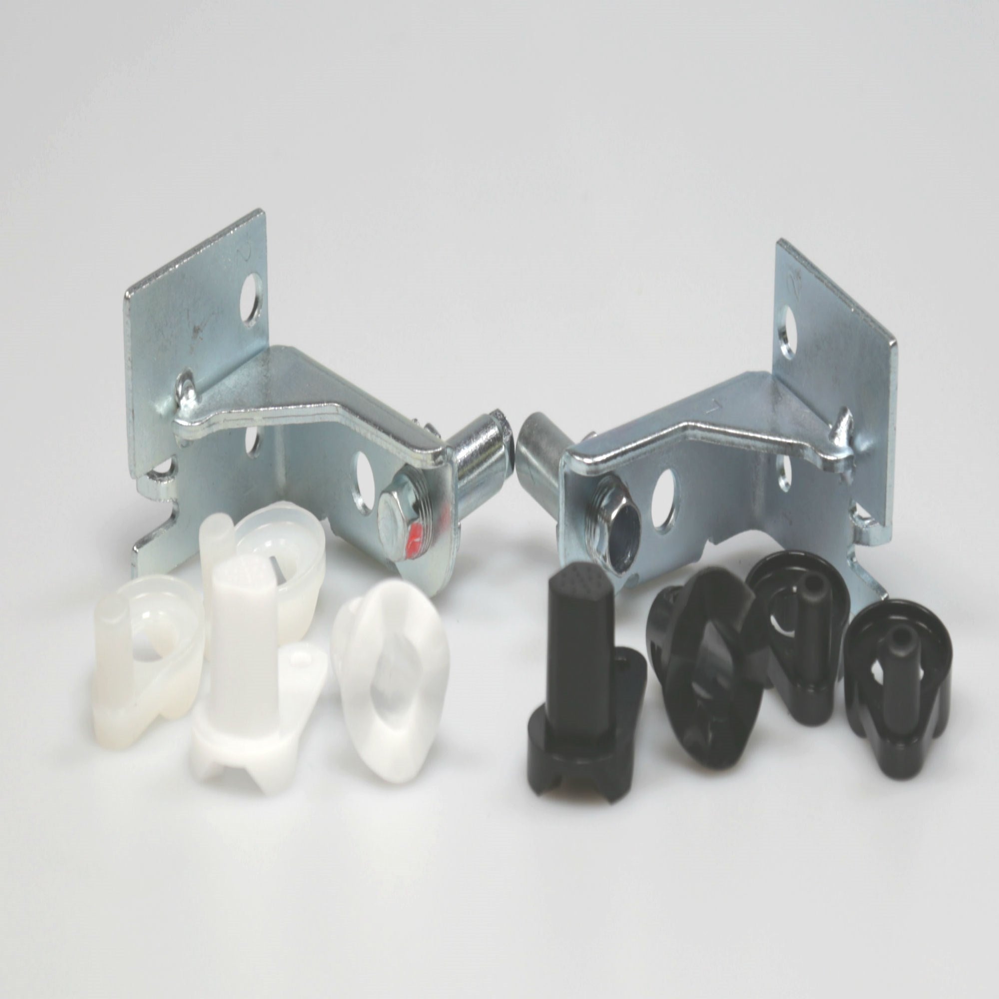 Refrigerator adjustable door hinge kit, for the left and right doors. This kit includes left and right hinges, door closers, hinge bearings, and instruction sheet.