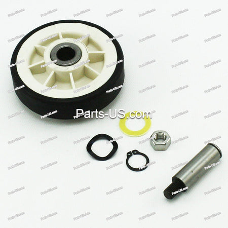 Drum Support Roller USA5998503 Fits most Maytag made dryers. Includes one roller, two washers part number WP312535, and instructions. It is recommended to replace both rollers at the same time. For front support bearing kit, order 306508.