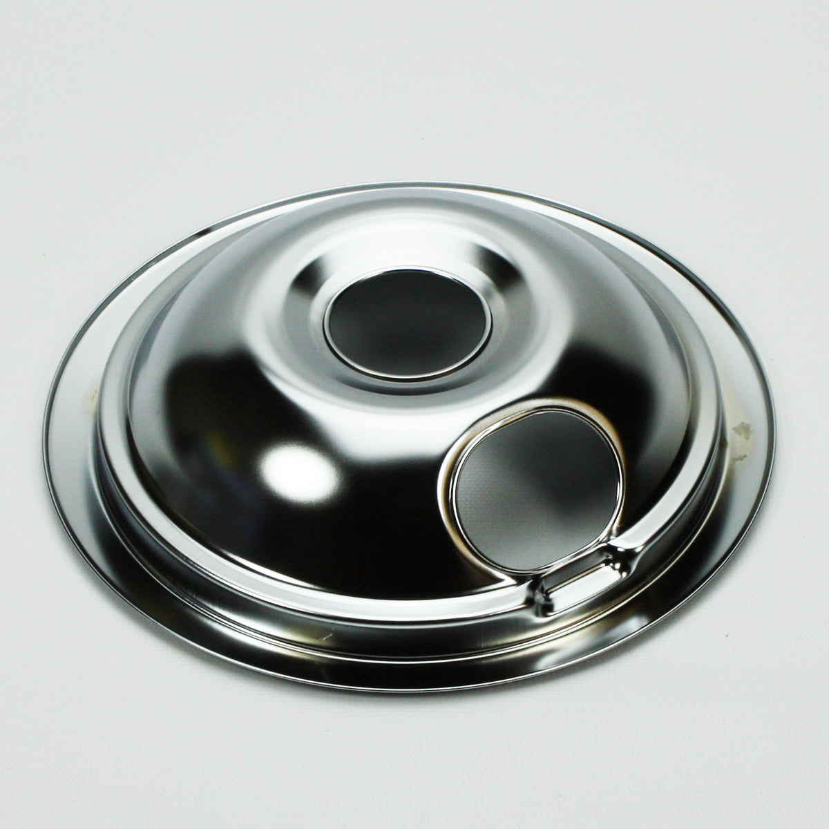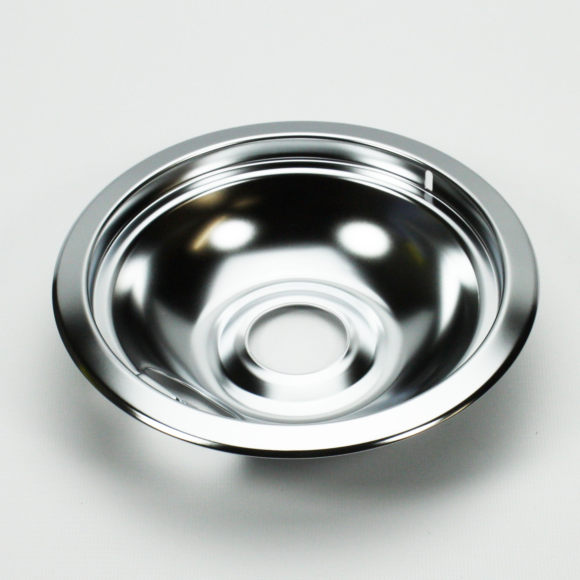 Small Drip Pan USA8919502 Range surface burner pan. Color: chrome. Measures about 8 inches in diameter at its widest point at the top.