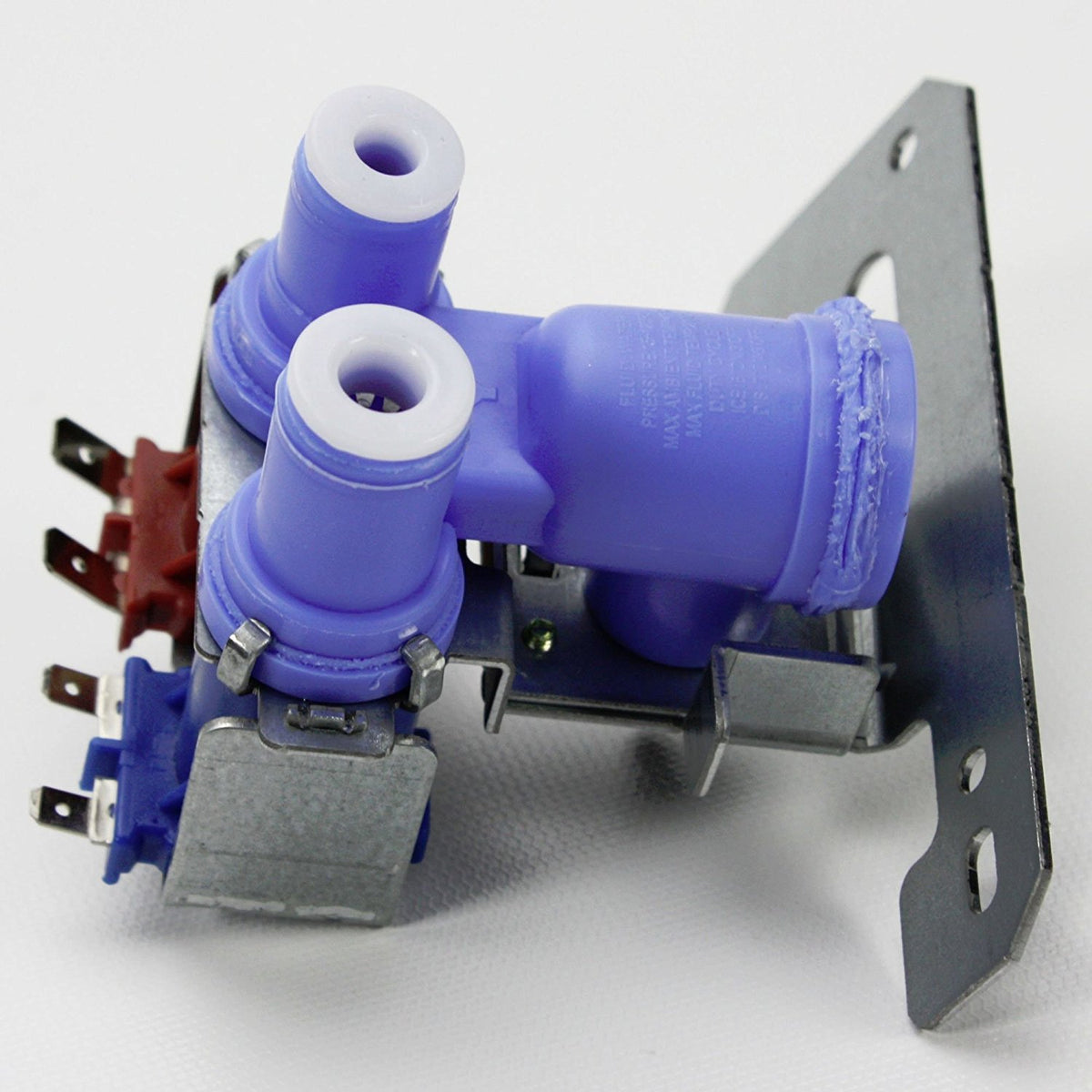 Water Inlet Valve USA6761751 Dual refrigerator water valve for icemaker and water in the door. Has new style push on fittings for water outlet lines. Water inlet fitting is a screw on compression.