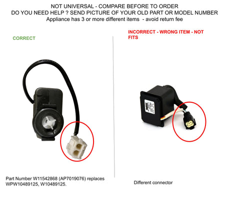 W11542868 - WPW10489125, sometimes the new part is different in shape and color, the new factory design meets the technical requirements to replace the old models, you can use the new part to meet the correct specifications